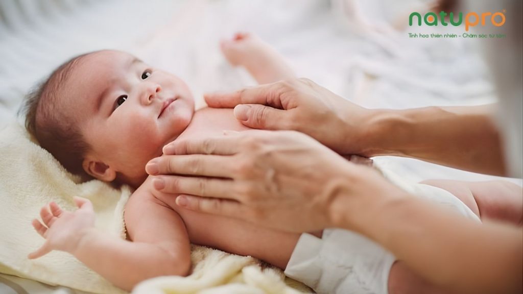 - Massage nhẹ nhàng vài phút giúp máu lưu thông và bé thư giãn dễ ngủ hơn.